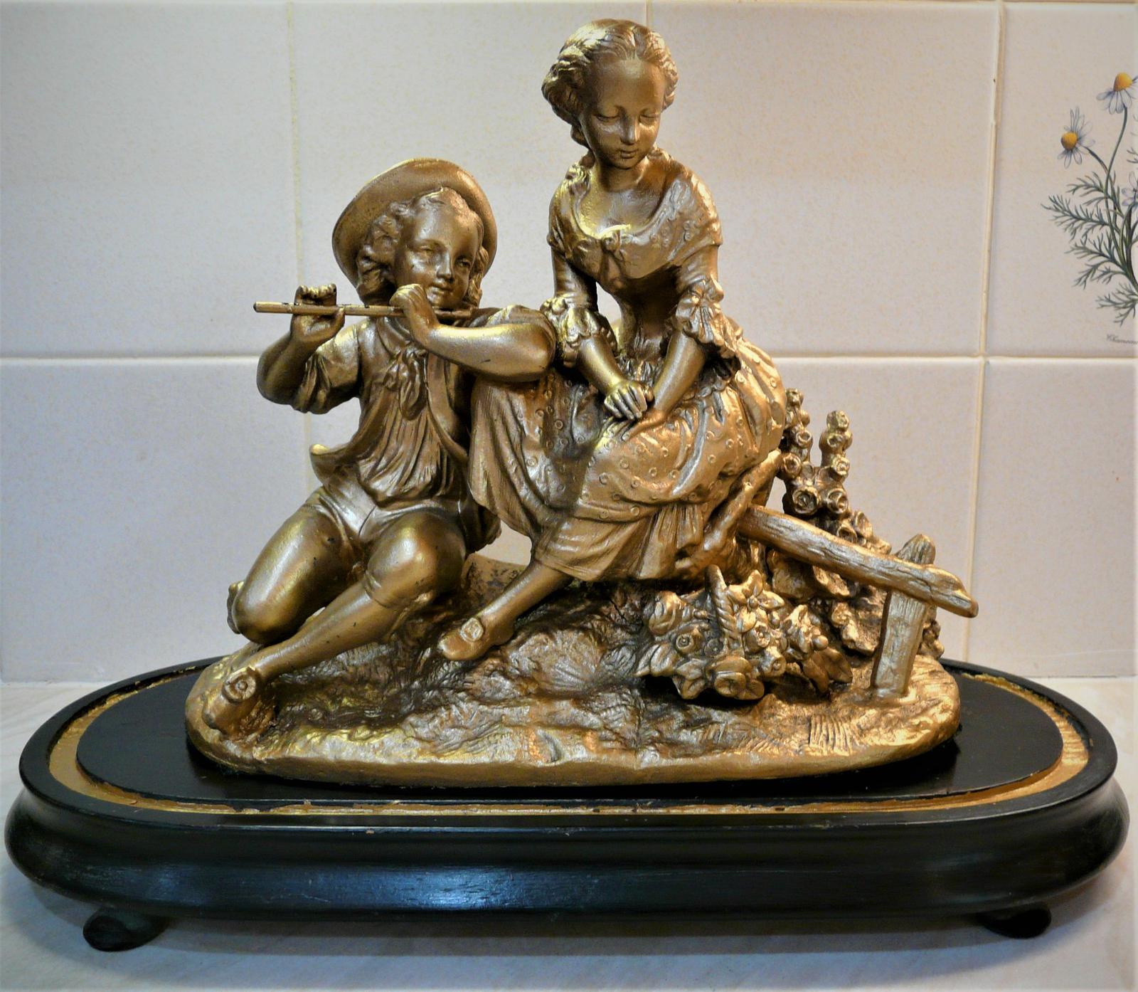 Spelter Figurine: Wonderful French Spelter Figurine on Ebonised Wooden Plinth 1880