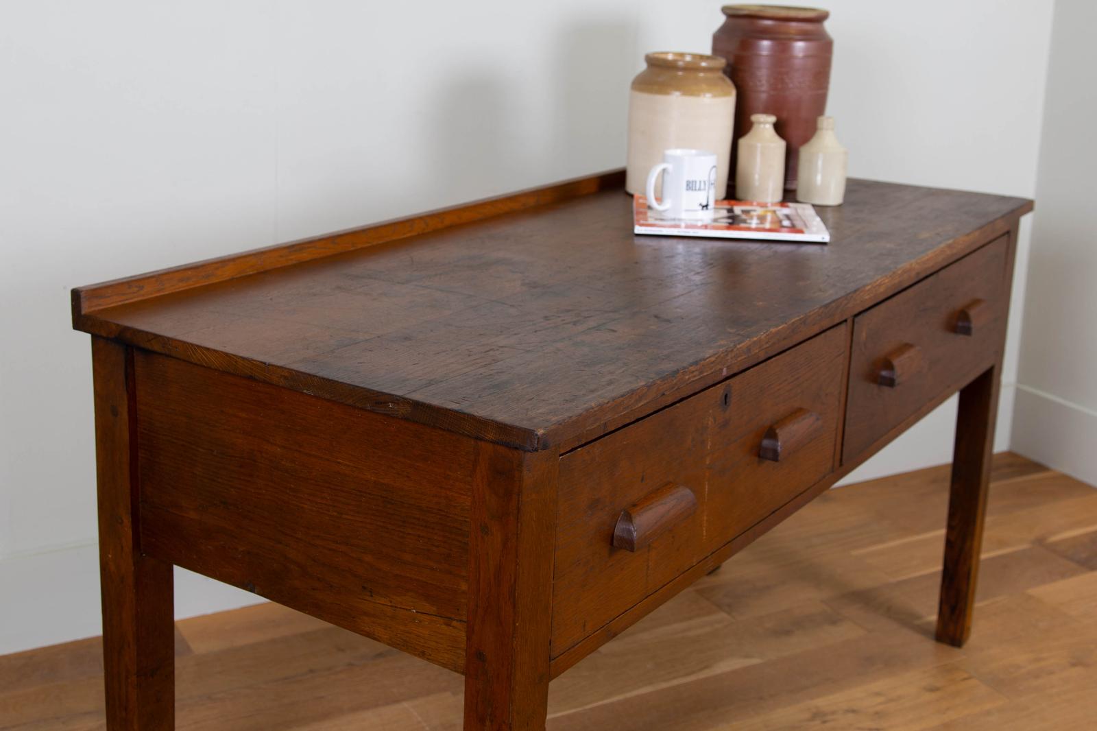 Splendid 1930s Oak Two Drawer Science School Cabinet Bench