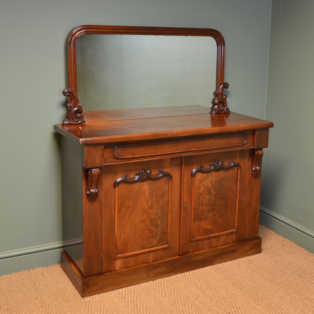 Splendid Figured Mahogany Victorian Mirrored Back Antique Chiffonier / Cupboard