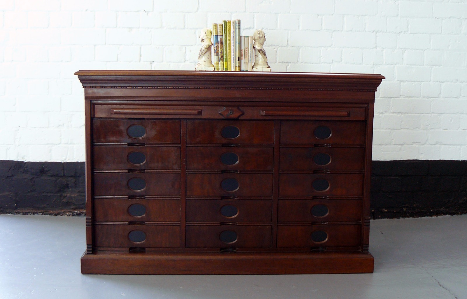 Splendid Late Victorian Amberg 15 Drawer Cabinet with Tambour Door