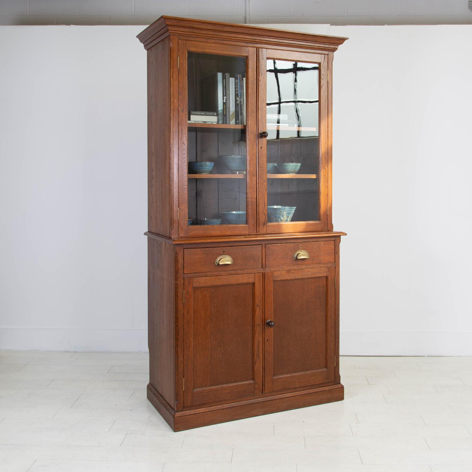 Splendid Oak 2 Drawer Glazed School Cabinet 1930s