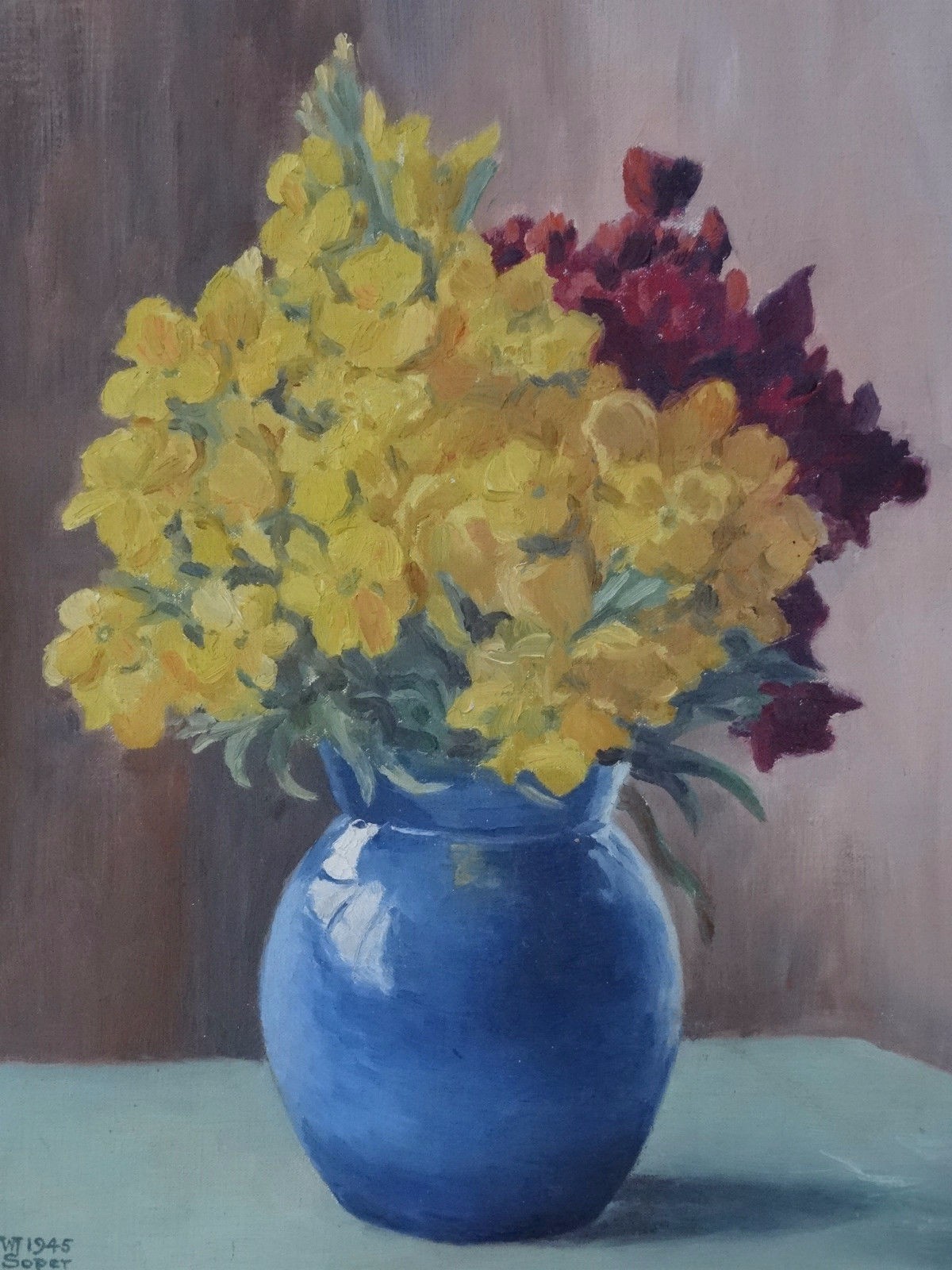 Splendid Original 1945 Oil on Canvas 'still life floral flower study'