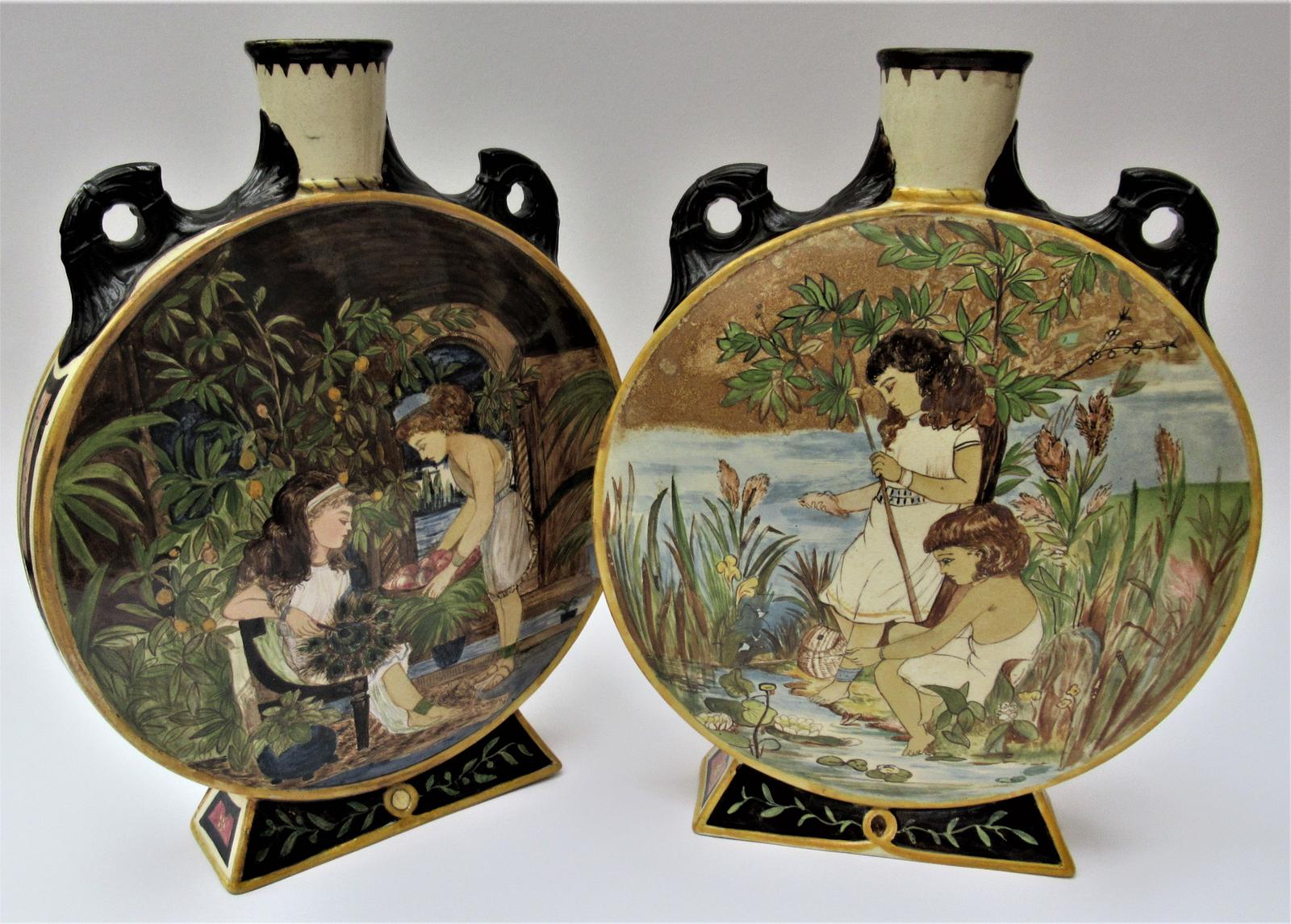 Splendid Pair of Large Mintons Moon Vases, 1874, Hand Painted, Possibly after John Moyr Smith