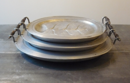 Splendid Set of 3 Large Edwardian Metal Serving Salvers