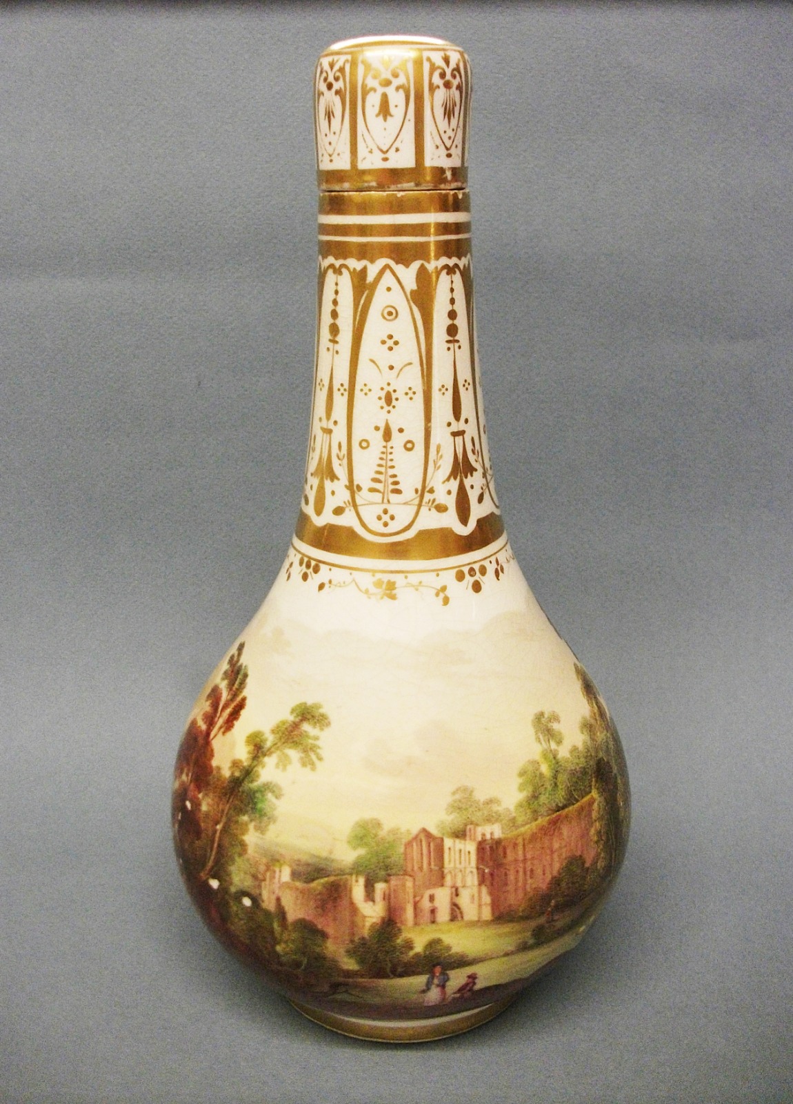 Splendid Staffordshire Bottle-Shape Vase & Cover c.1830
