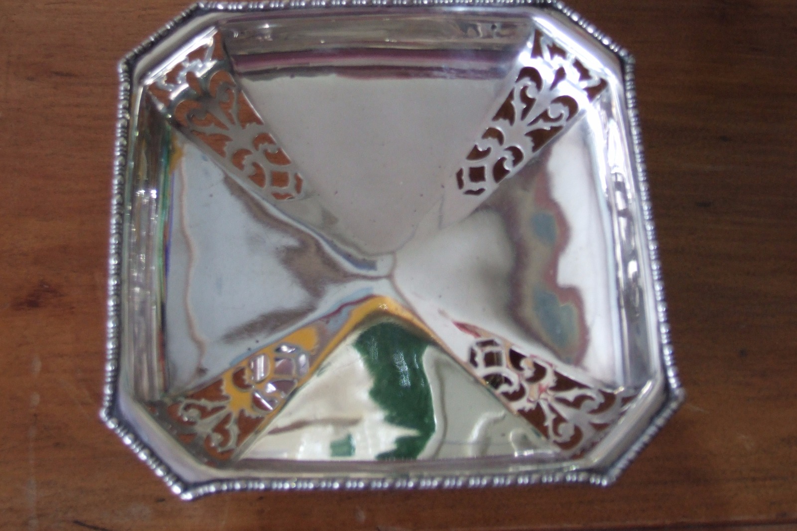 Square Silver Comport/Tazza with Pierced Work Design, 1940 by Mappin & Webb (1 of 1)