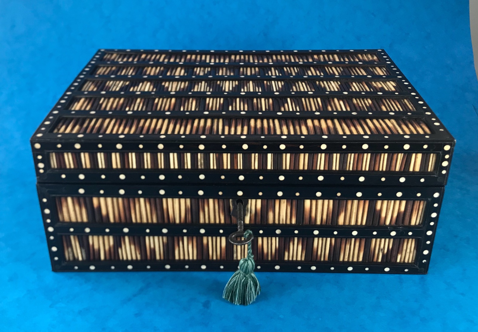 Sri Lankan 1880 Ebony and Bone Inlaid Porcupine Quill Box