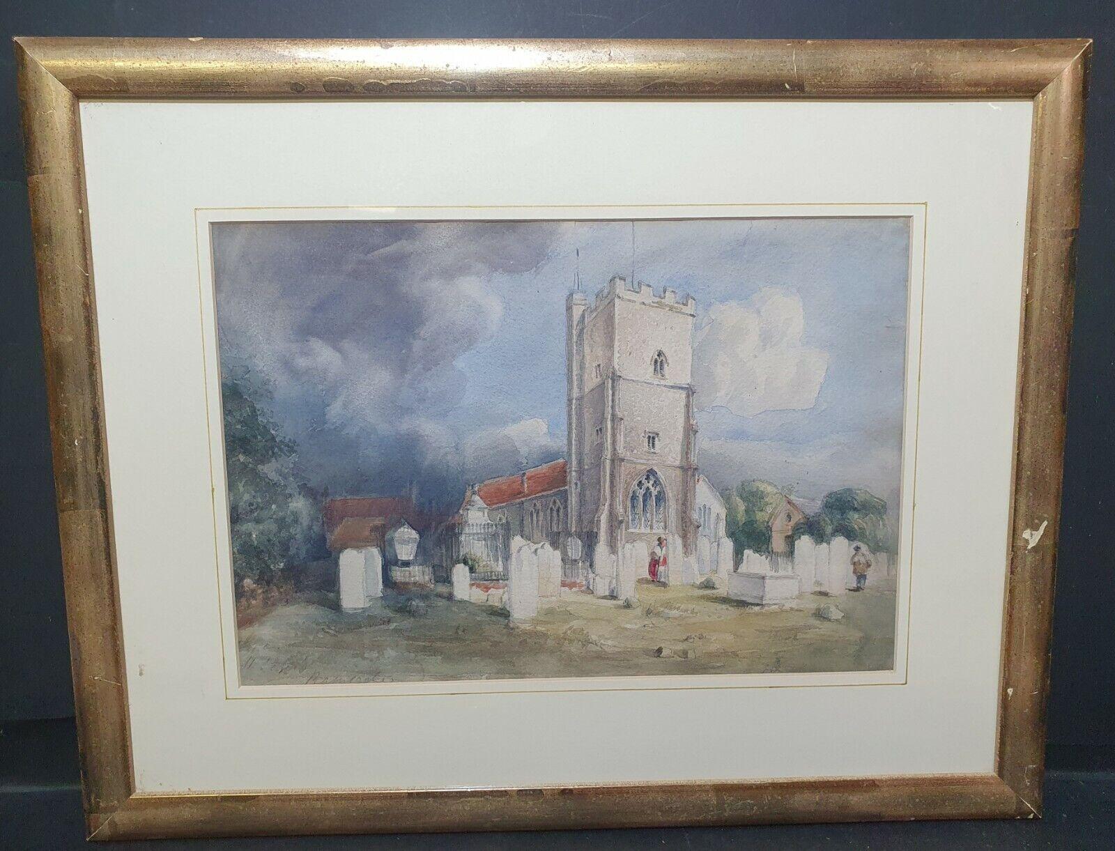 St Peter's Church Ramsgate Kent 1839, Antique Glass Framed Watercolor Signed