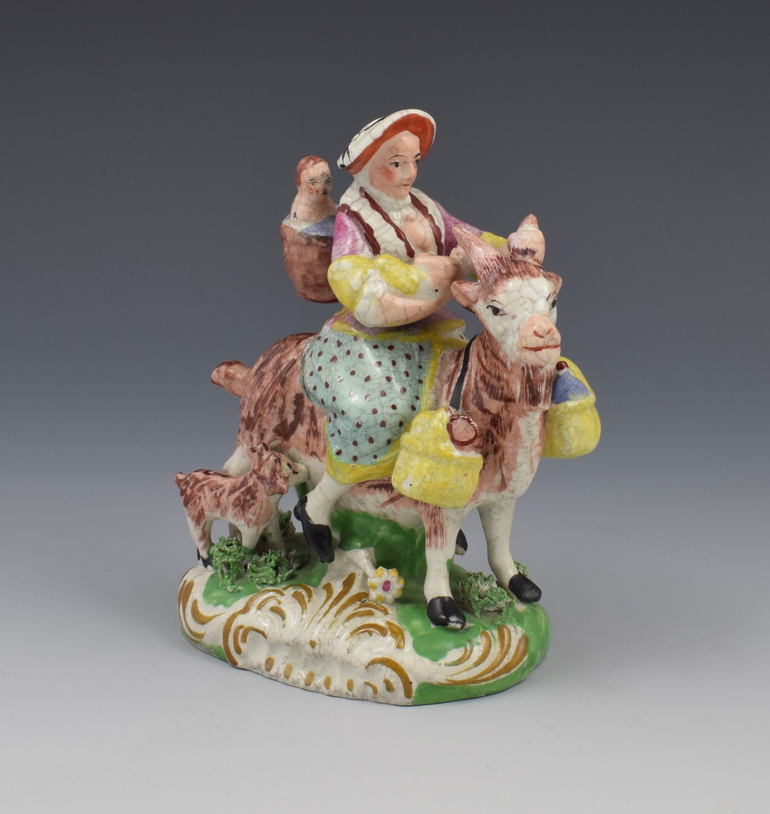 Staffordshire Figure Welsh Welch Tailor's Wife Riding Goat (1 of 1)