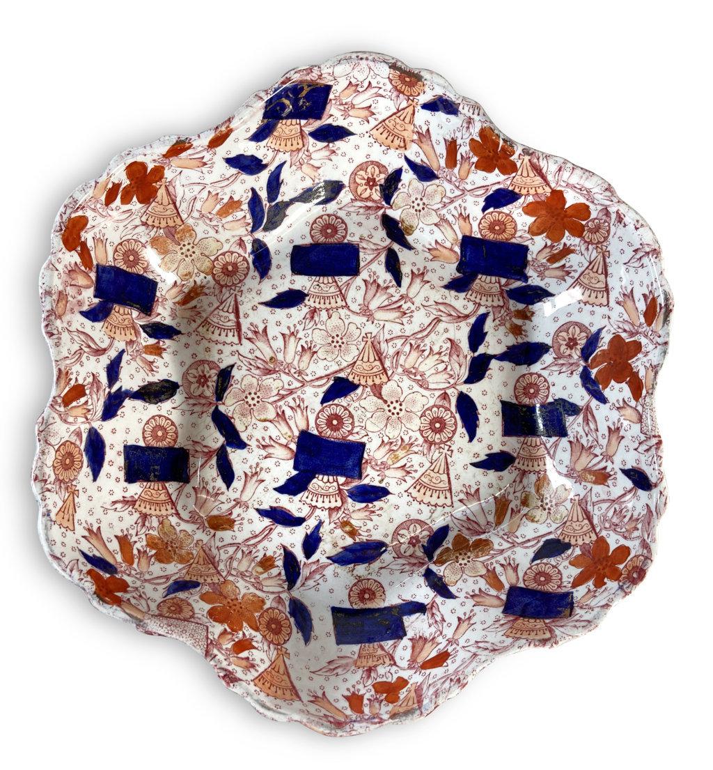 Staffordshire Lotus Shape Imari Pattern Bowl