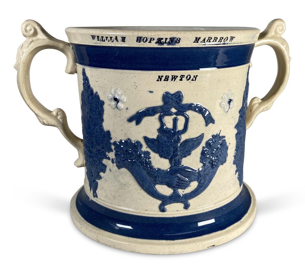 Staffordshire Pottery Marriage Loving Frog Cup Inscribed William Hopkins Marbrow & Sarah Marbrow