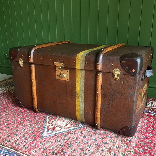 Steamer Trunk 1930s Art Deco Bentwood Travel Chest Coffee Table Storage