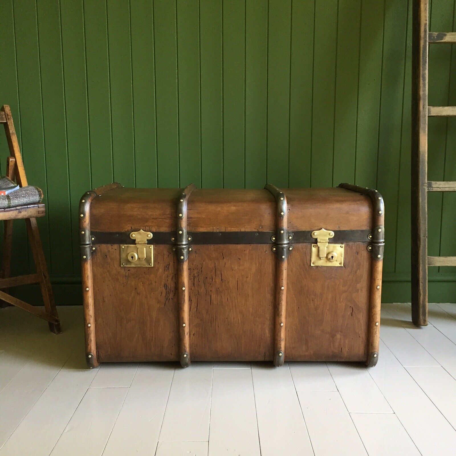 Steamer Trunk Coffee Table Old Banded Travel Trunk Rustic Storage Chest Blanket Box