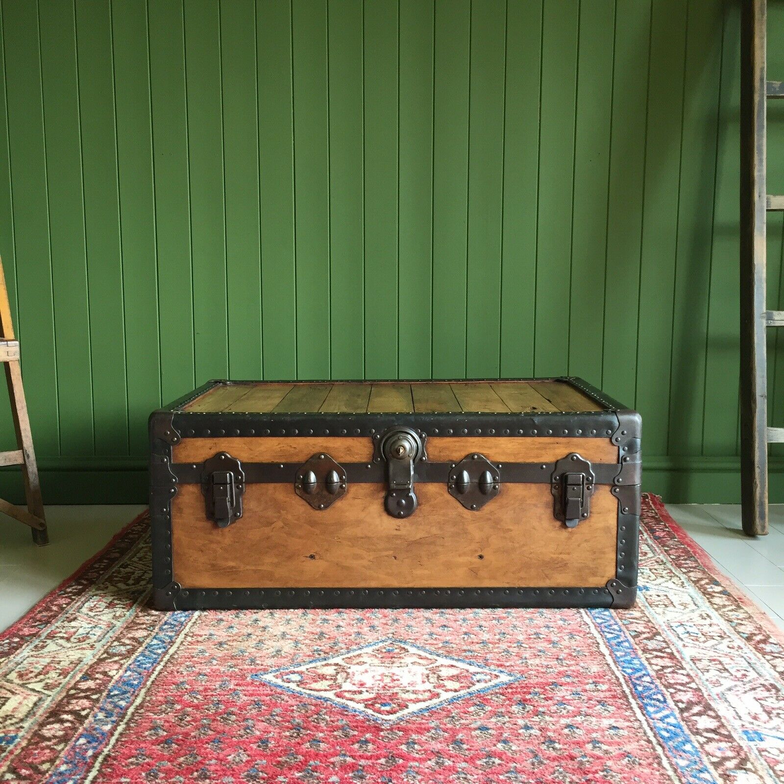 Steamer Trunk Vintage 1930s Old Travel Trunk Coffee Table Rustic Wooden Storage Chest