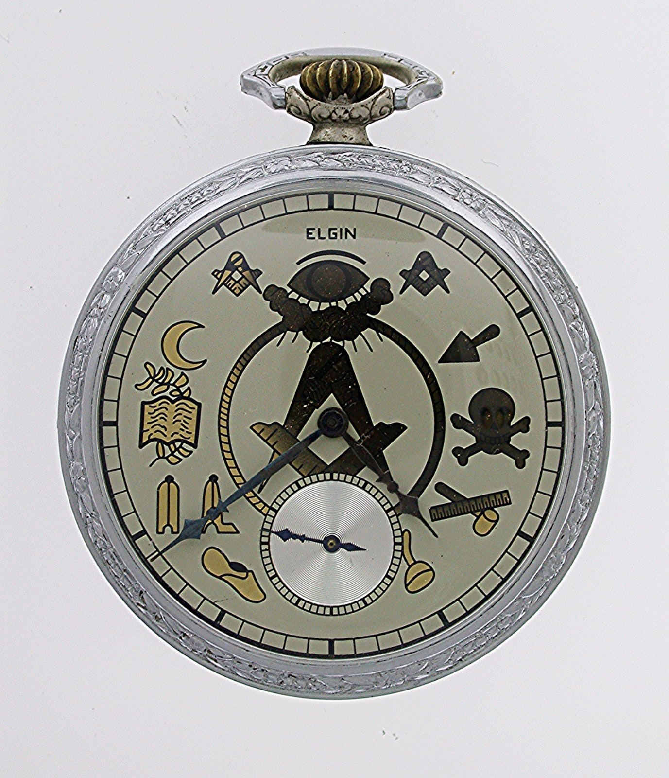 Steel Elgin Masonic Open Face Pocket Watch USA 1912 (1 of 1)