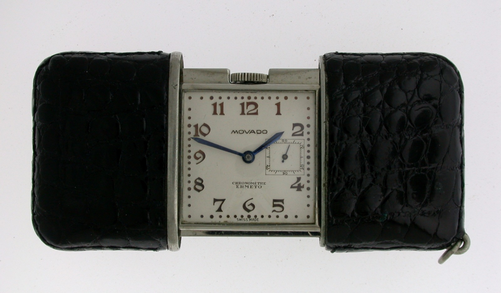 Steel & Leather ORIGINAL MOVADO ERMETO Purse Watch Swiss 1930
