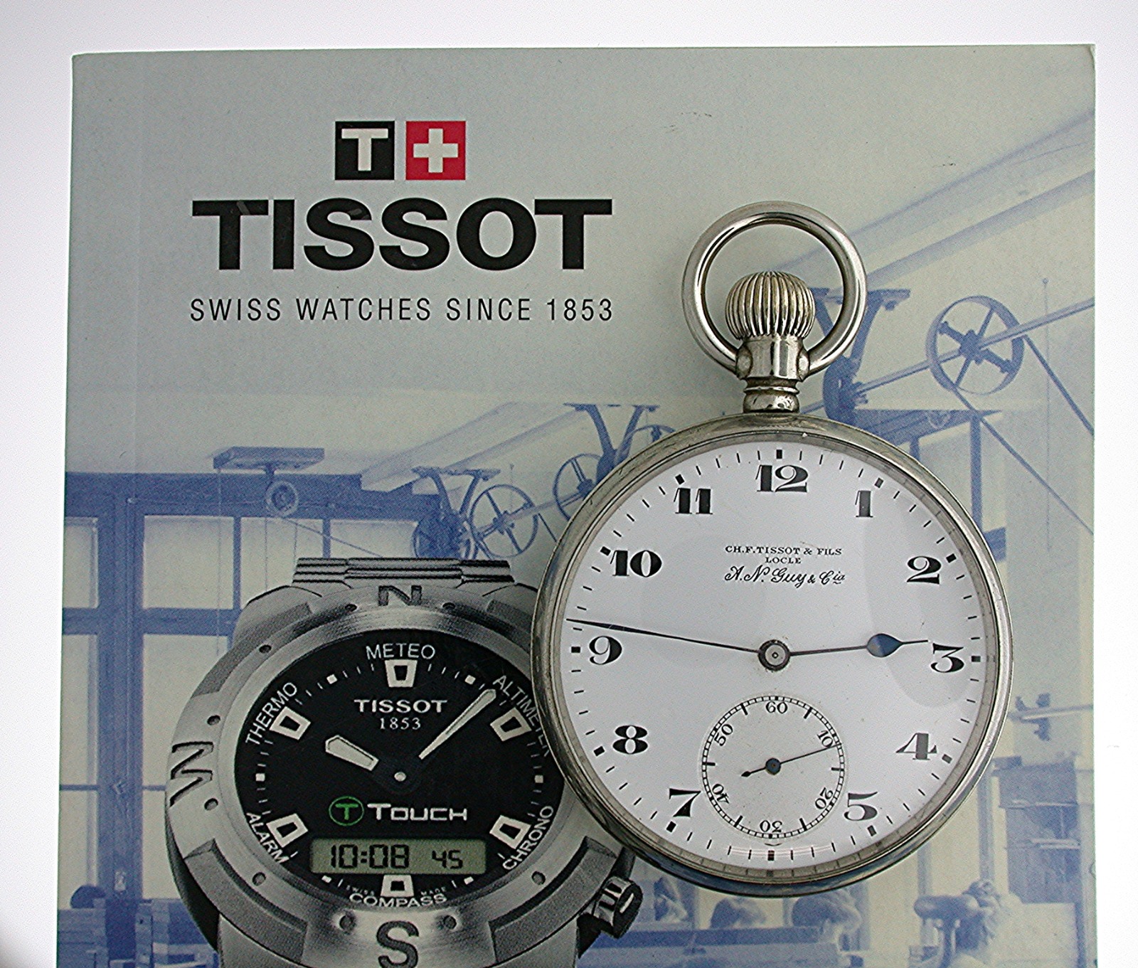 Steel Tissot Open Face Pocket Watch Swiss 1930 with Tissot Book