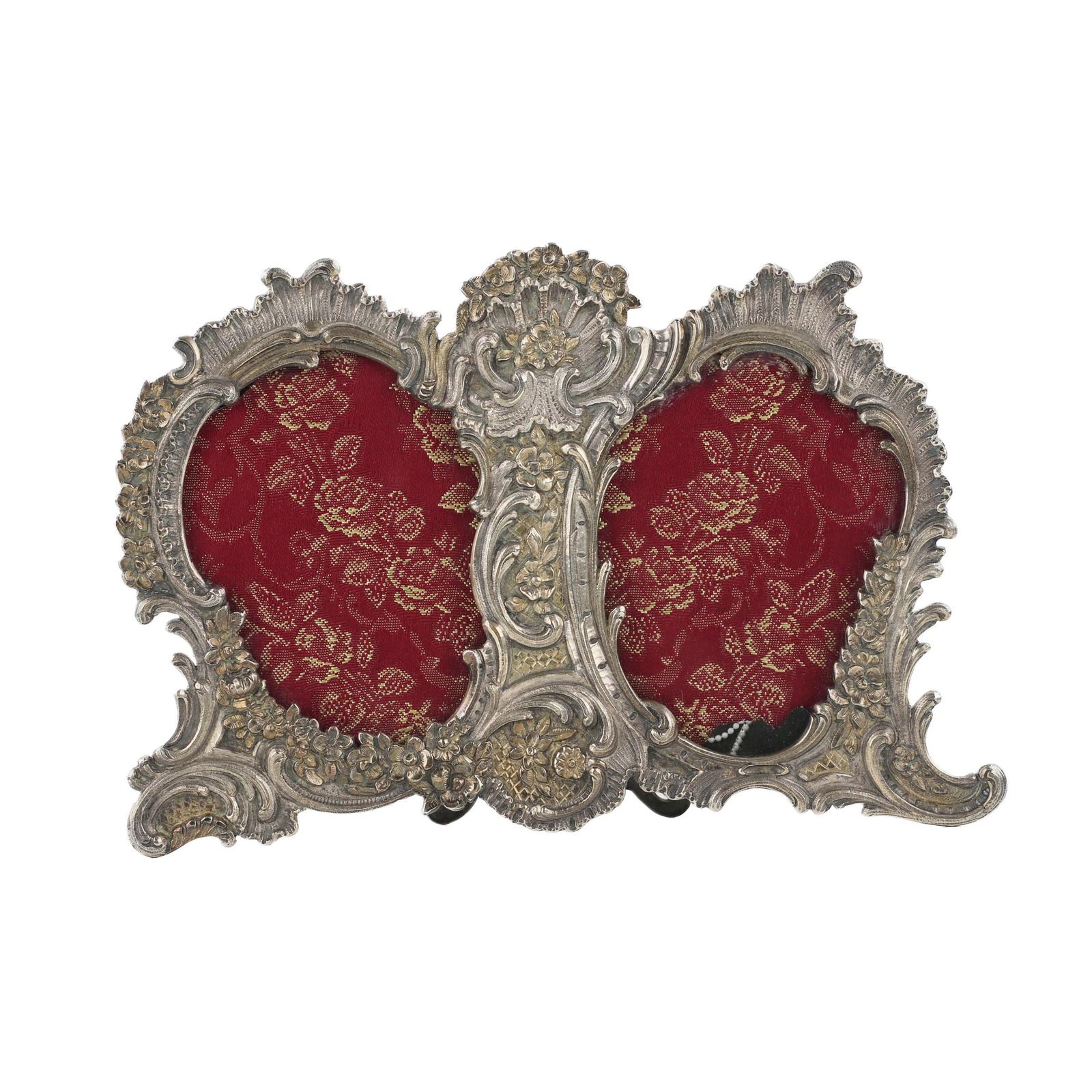 Stefani Bologna. Double Silver Photo Frame in Baroque Style. Italy 20th Century.