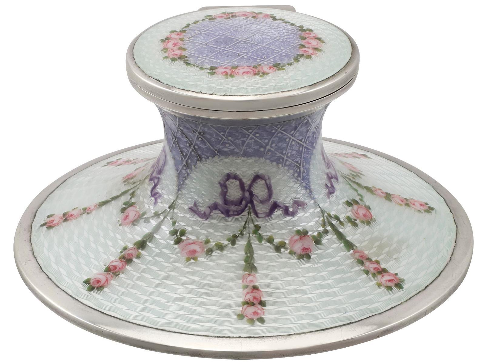 Sterling Silver and Enamel Capstan Inkwell - Antique George V (1 of 15)