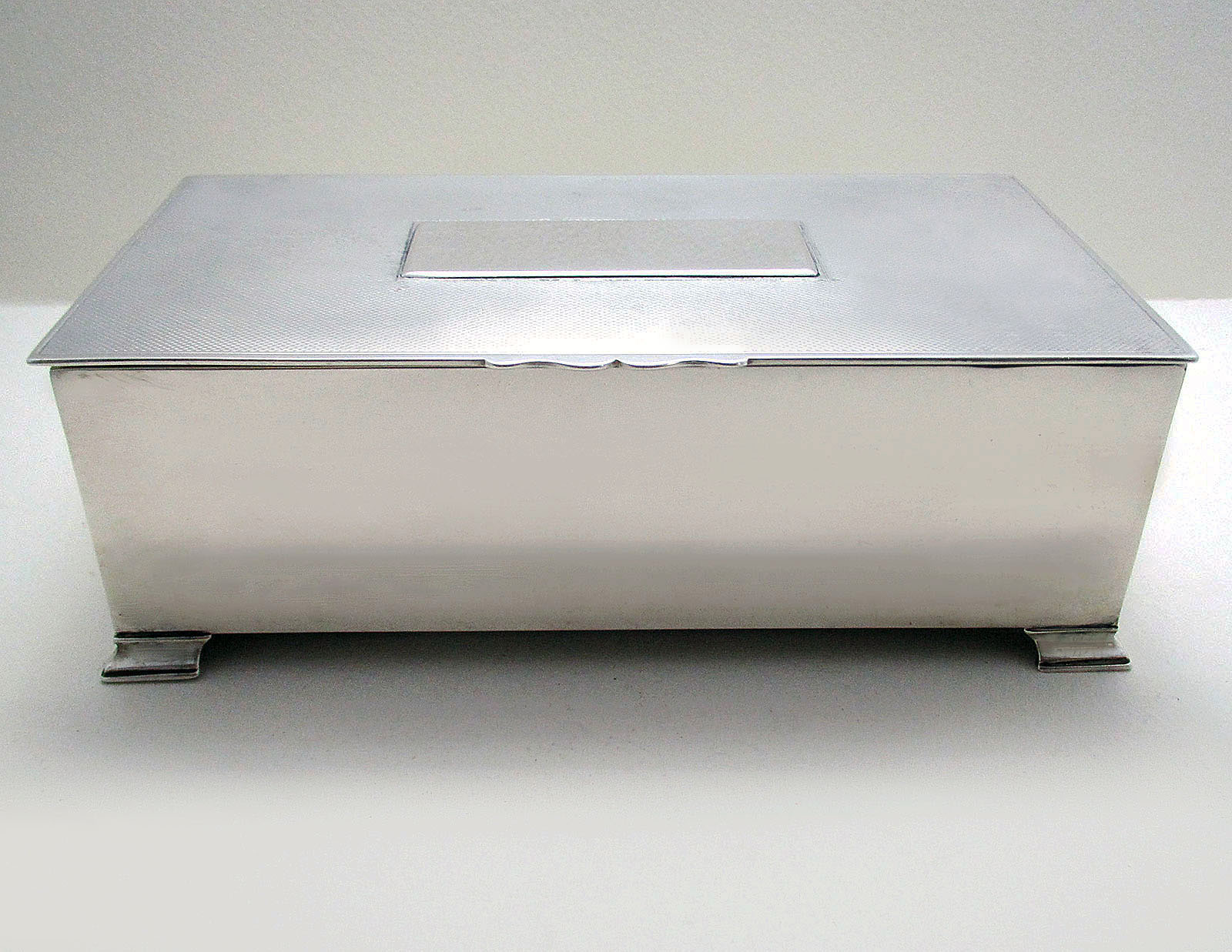 Sterling Silver Art Deco Table Cigarette Box Cigar Trinket Jewelry Casket Case, Mappin & Webb.,English Birmingham Hallmarked