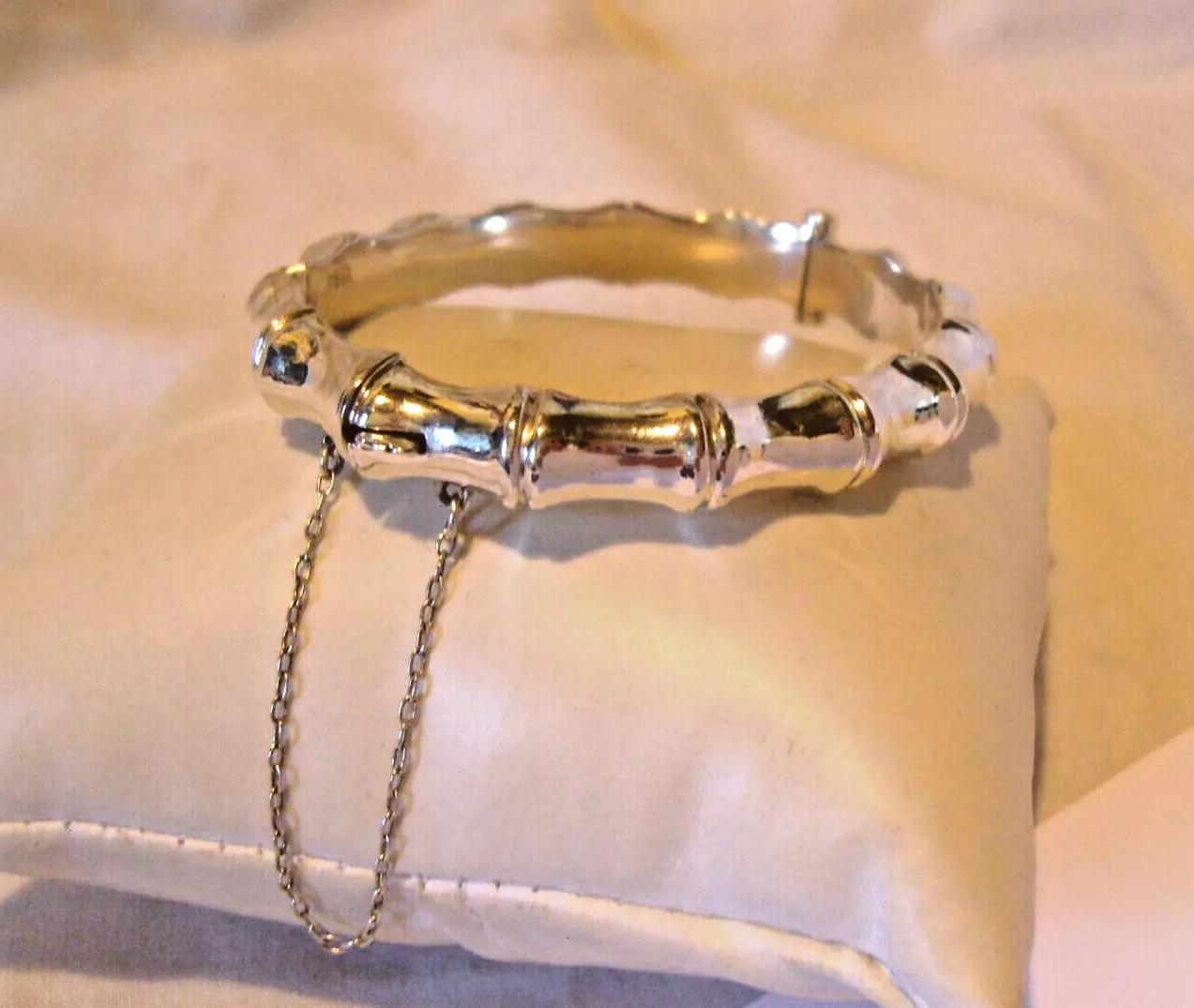 Sterling Silver Bamboo Bangle 1979 Vintage Ornate Fancy Bracelet 7" Length