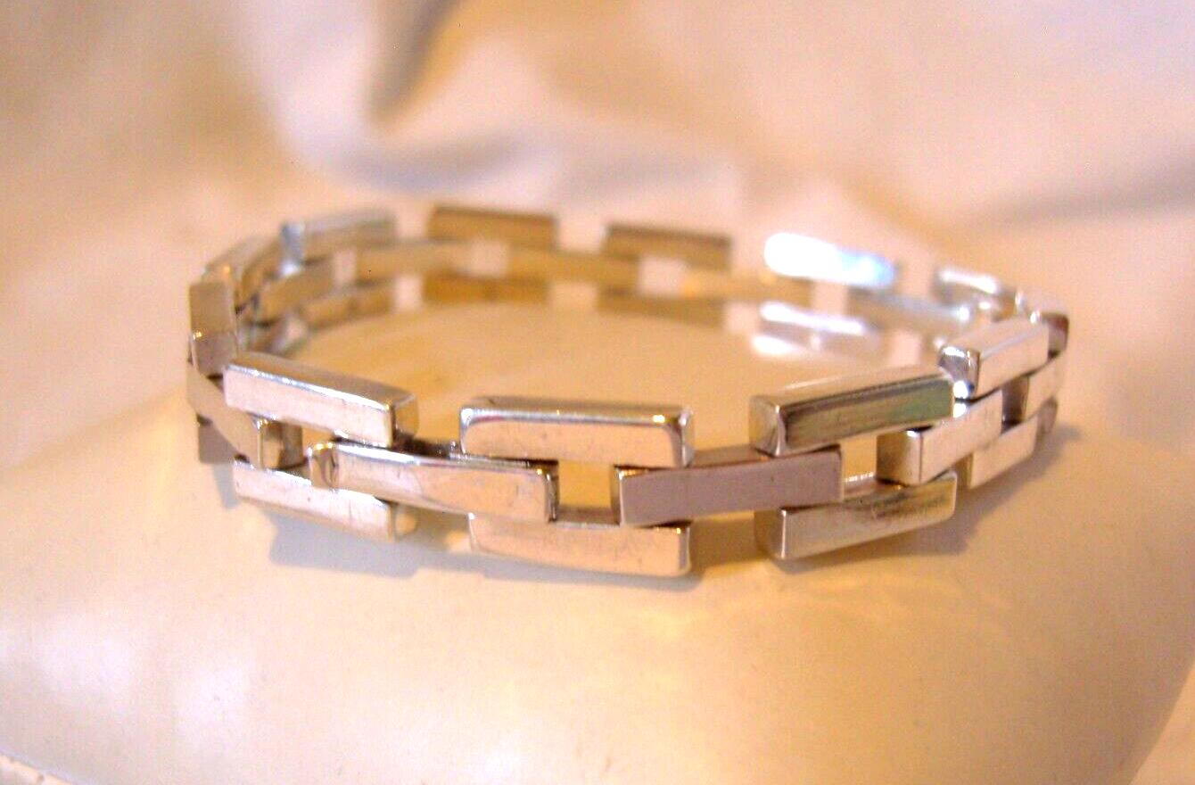Sterling Silver Bracelet 1946 Wide Modernist Brick Link 8"Length 43.3 Grams