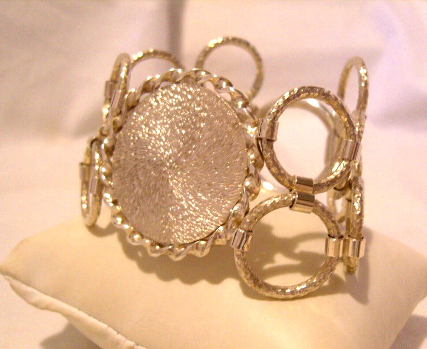 Sterling Silver Bracelet 1975 Vintage Large Ornate Silver Discs - Heavy 77.5 Grams