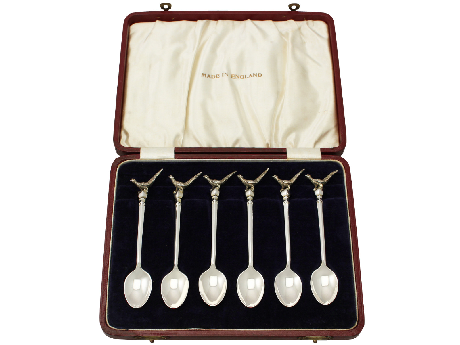 Sterling Silver Coffee / Tea Spoons with Cast Pheasant Terminals (1 of 1)
