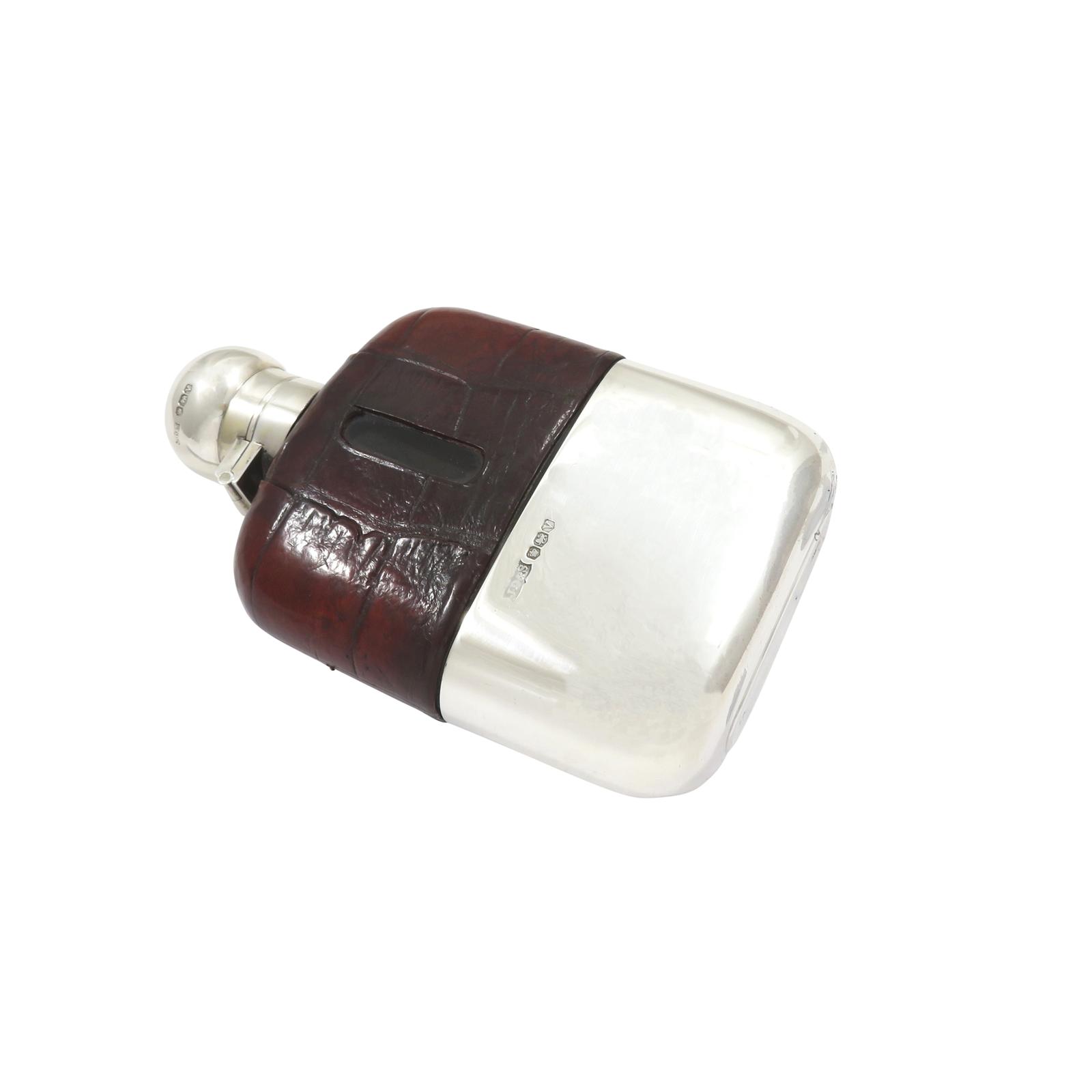 Sterling Silver & Crocodile Leather Hip Flask 1938