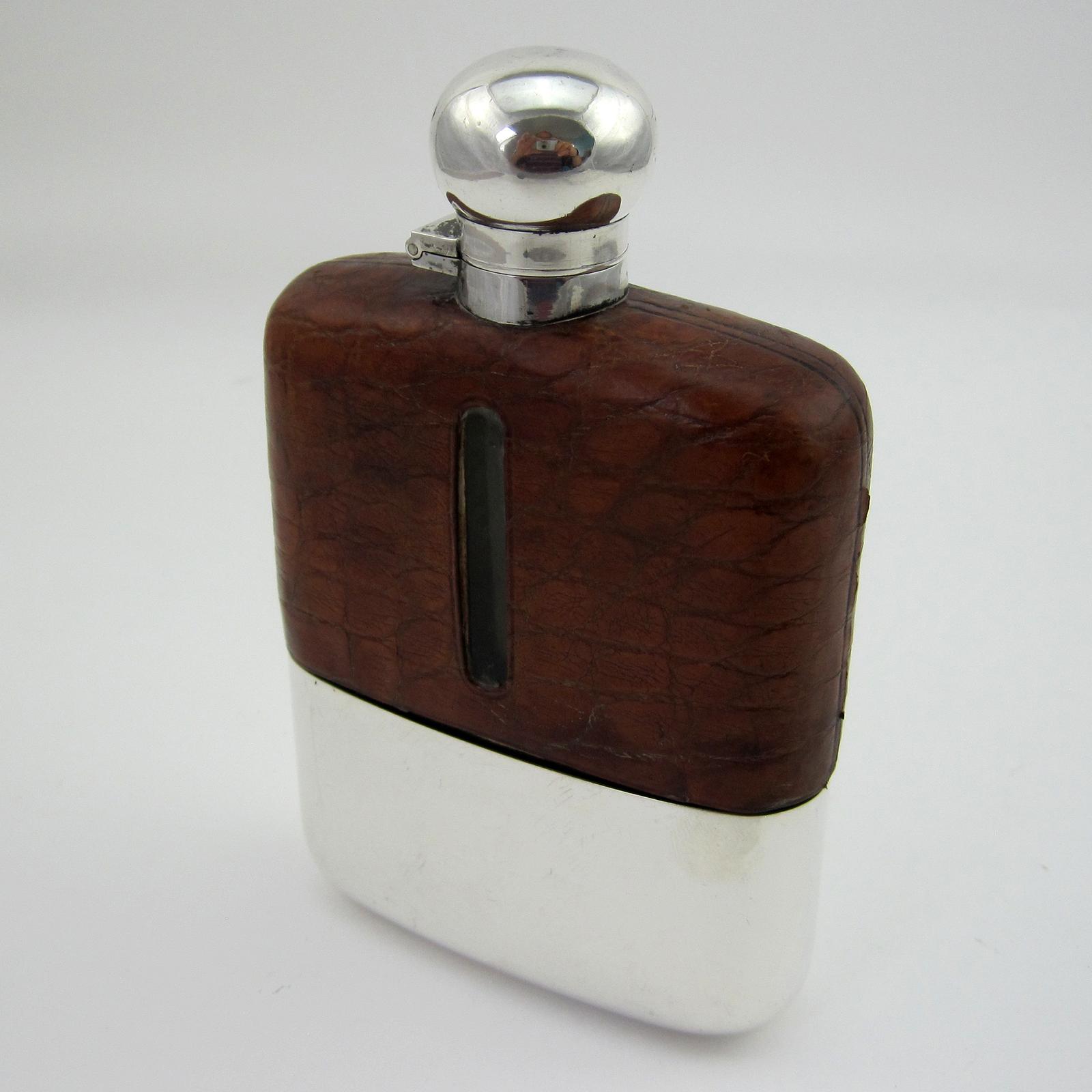 Sterling Silver & Crocodile Leather Hip Flask (1 of 7)