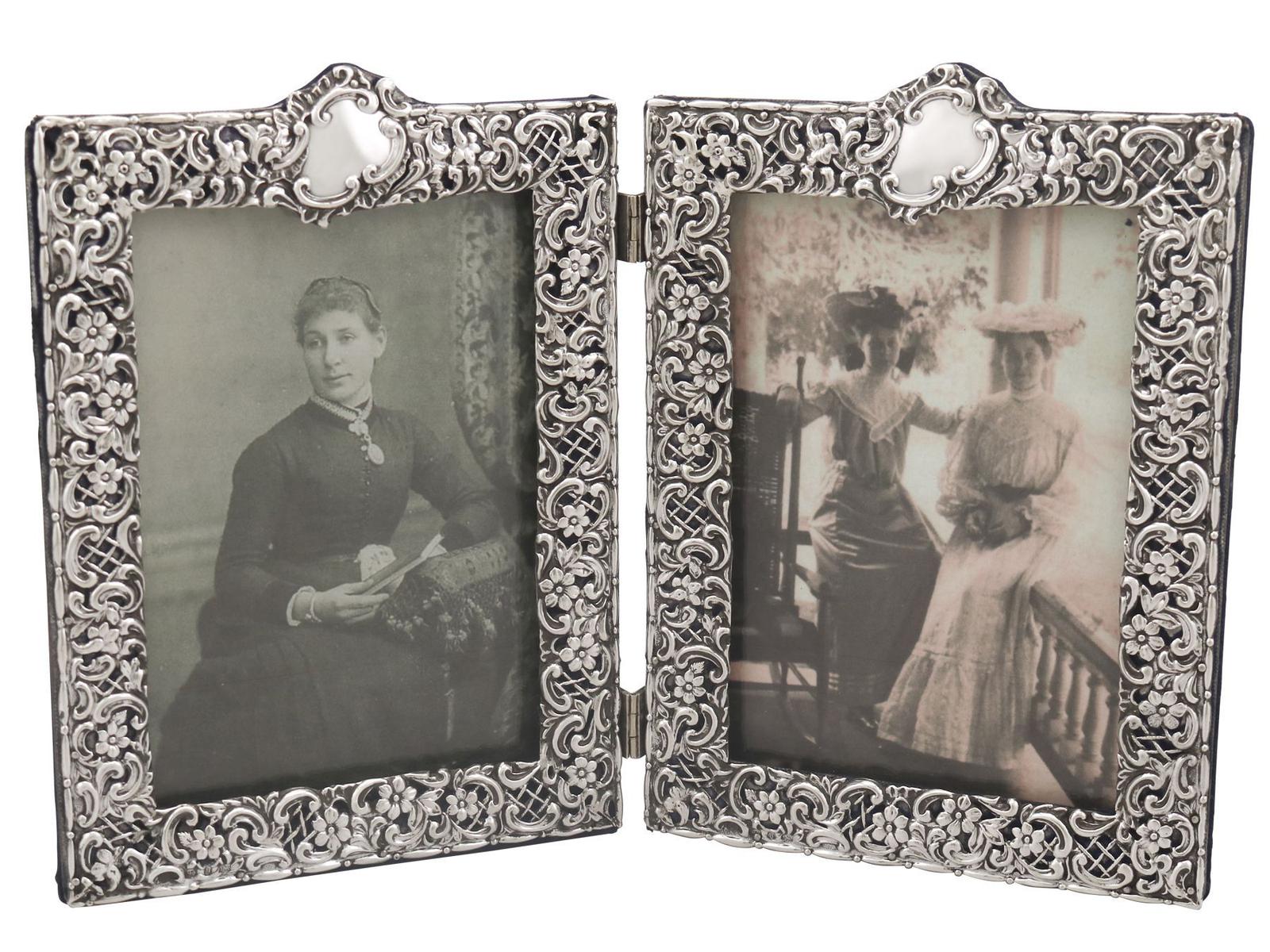 Sterling Silver Double Photograph Frame - Antique Victorian 1895 (1 of 12)
