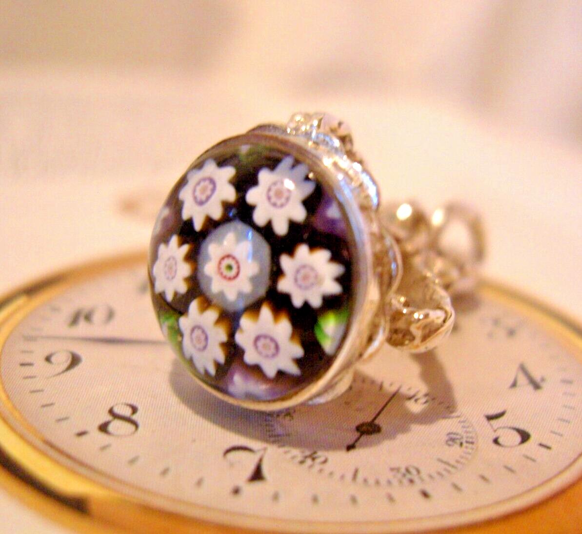 Sterling Silver Fob Vintage 1983 Caithness Glass Pocket Watch Chain Large Daisy Fob