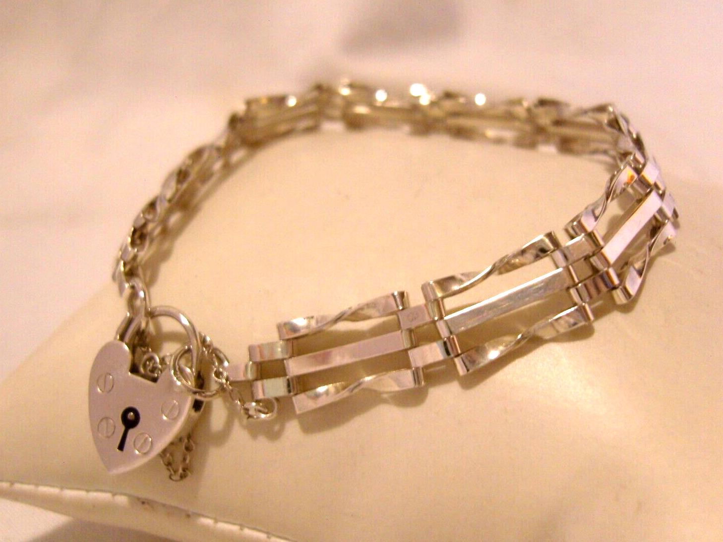 Sterling Silver Gate Bracelet 1978 Vintage with Ornate Love Heart Padlock 7 1/2" Length