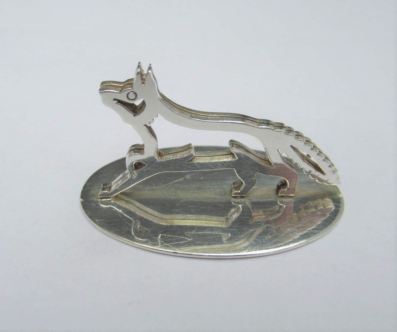 Sterling Silver George V Fox Menu or Place Card Holder. Hallmarked Hamilton & Inches, Edinburgh 1912.