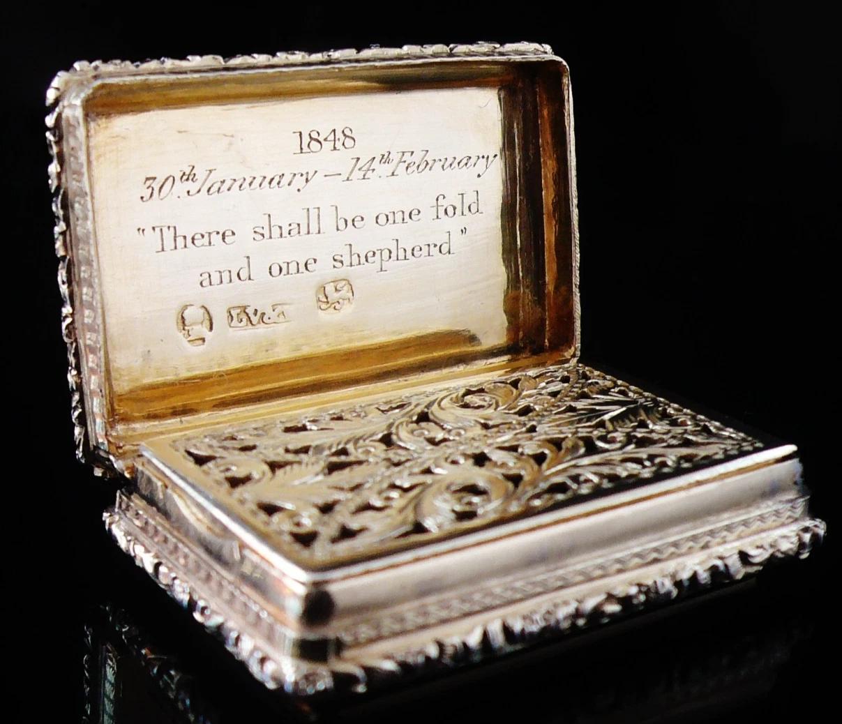 Sterling Silver Picture Top Vinaigrette, Yapp & Woodward, Birmingham 1847