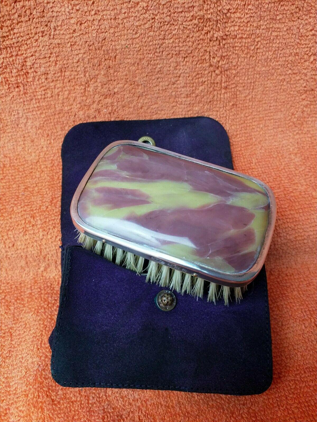 Sterling Silver Hallmarked Cased Purple & Yellow Small Brush 1928 W F H