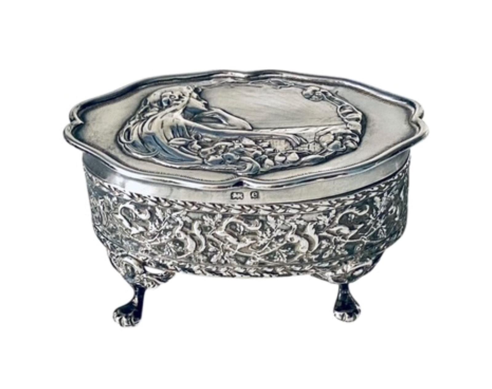 Sterling Silver Jewel Casket Antique / Art Nouveau Birmingham 1904