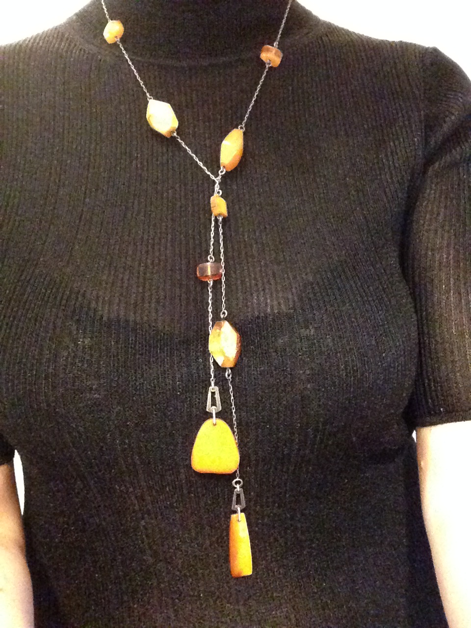 Sterling Silver Necklace with Genuine Antique Butterscotch Amber in Art Deco Style 32 Gr ( Free Shipping To Uk).