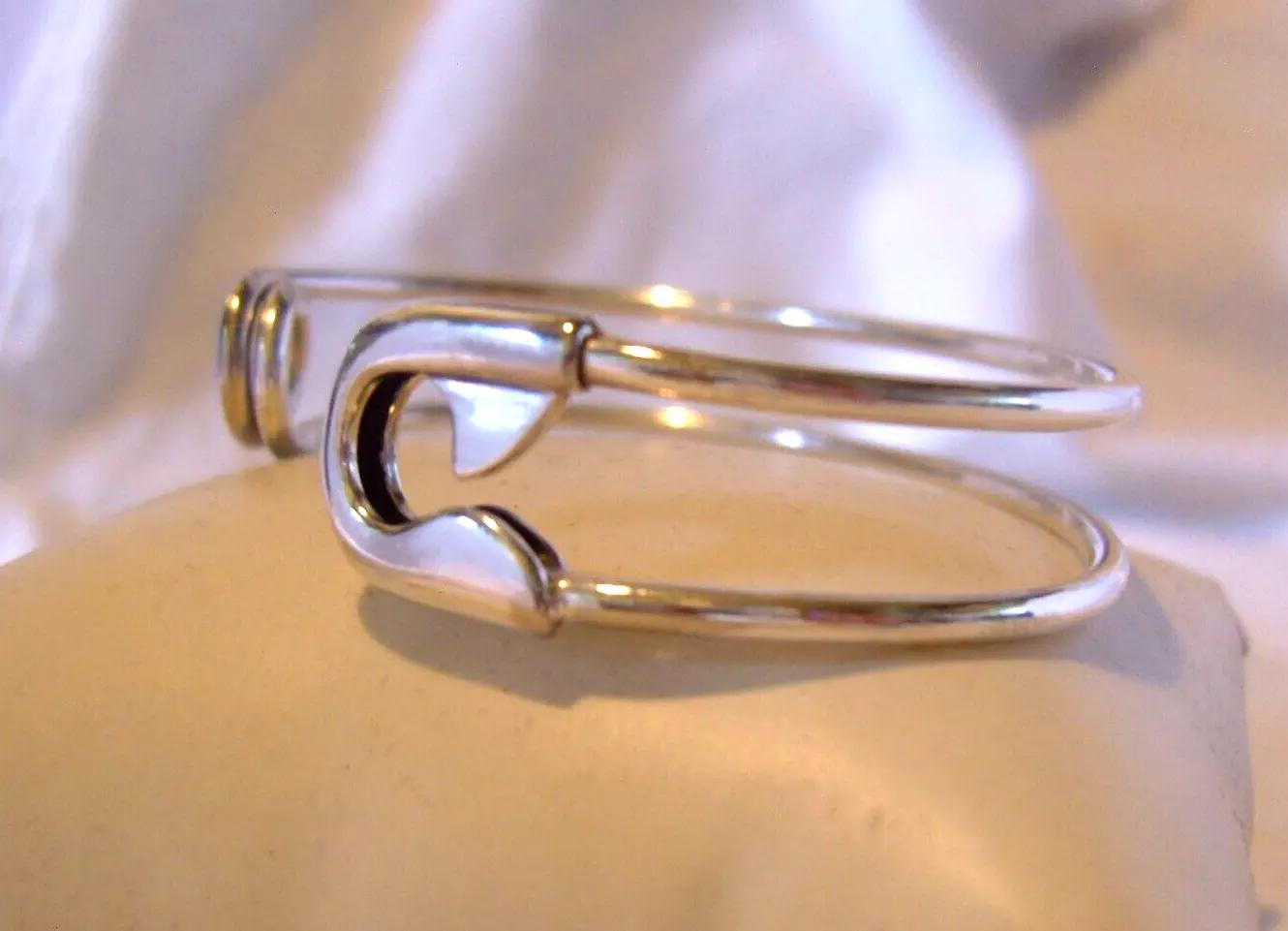 Sterling Silver Safety Pin Bangle Vintage Punk 1980s Large Silver Bracelet