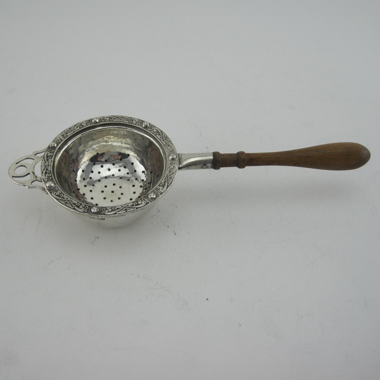 Sterling Silver Tea Strainer with Polished Wooden Turned Handle