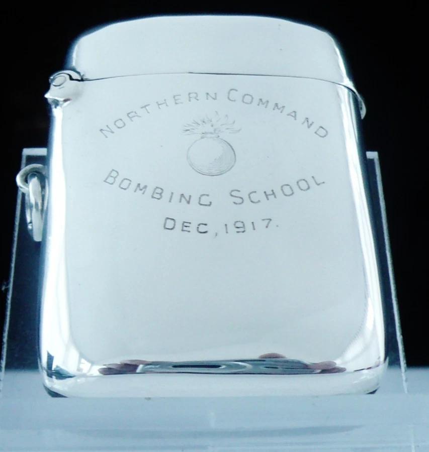 Sterling Silver Vesta Case, Military Bombing School, A & S Hdrs, Birmingham 1917
