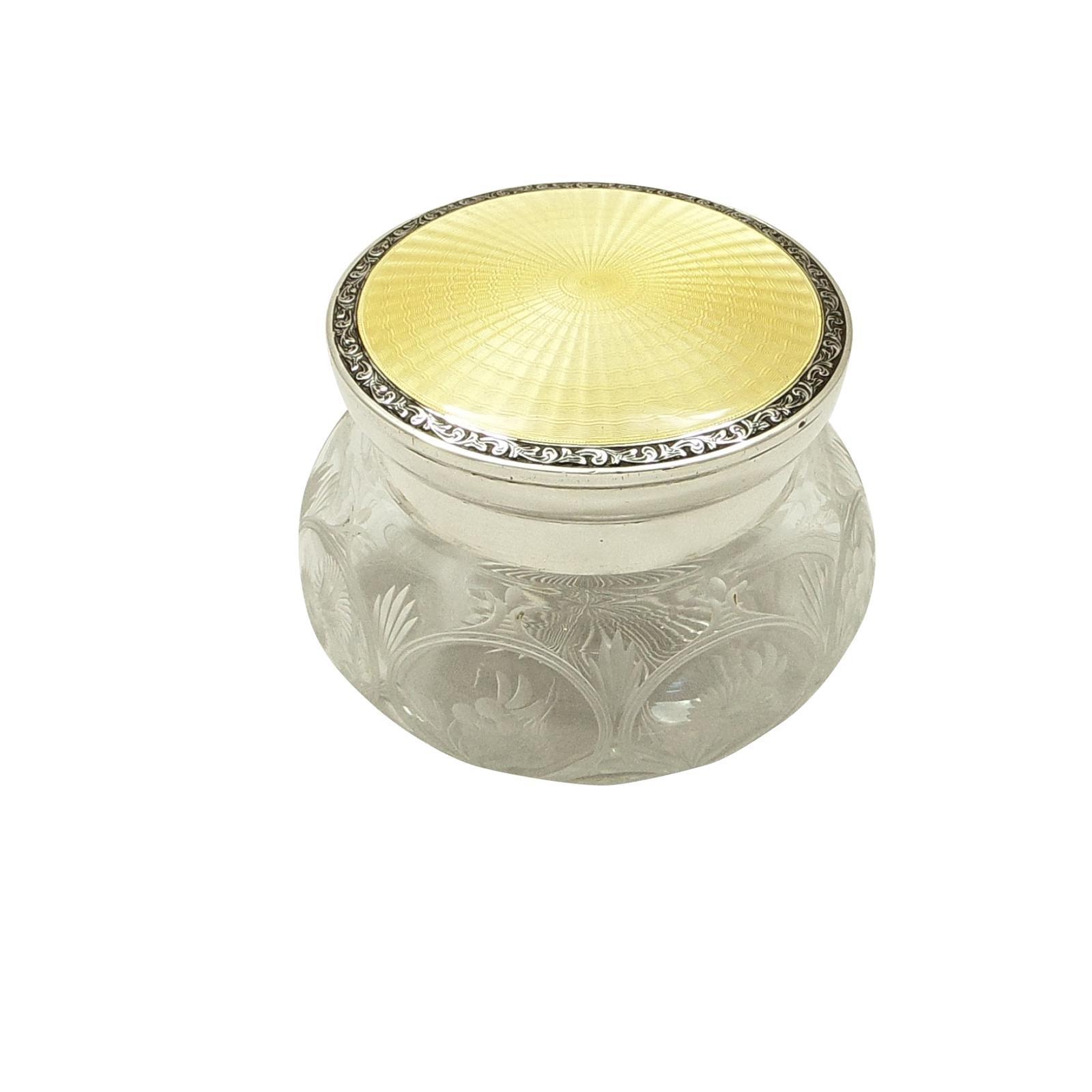 Sterling Silver & Yellow Enamel Lid Vanity Jar 1928