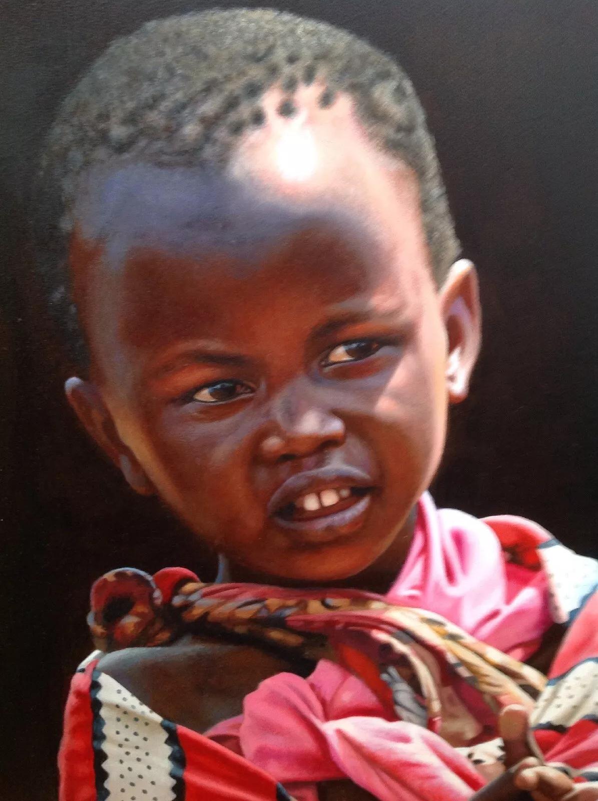 Steve Burgess (born 1960) Oil on Board of Masai Child in Traditional Dress