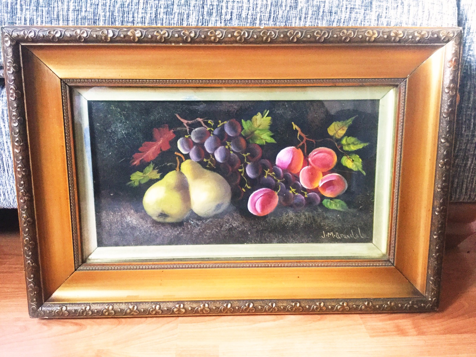 Still Life Fruit Oil Painting On Board Under Glass Signed J.M.Arundel (1 of 1)