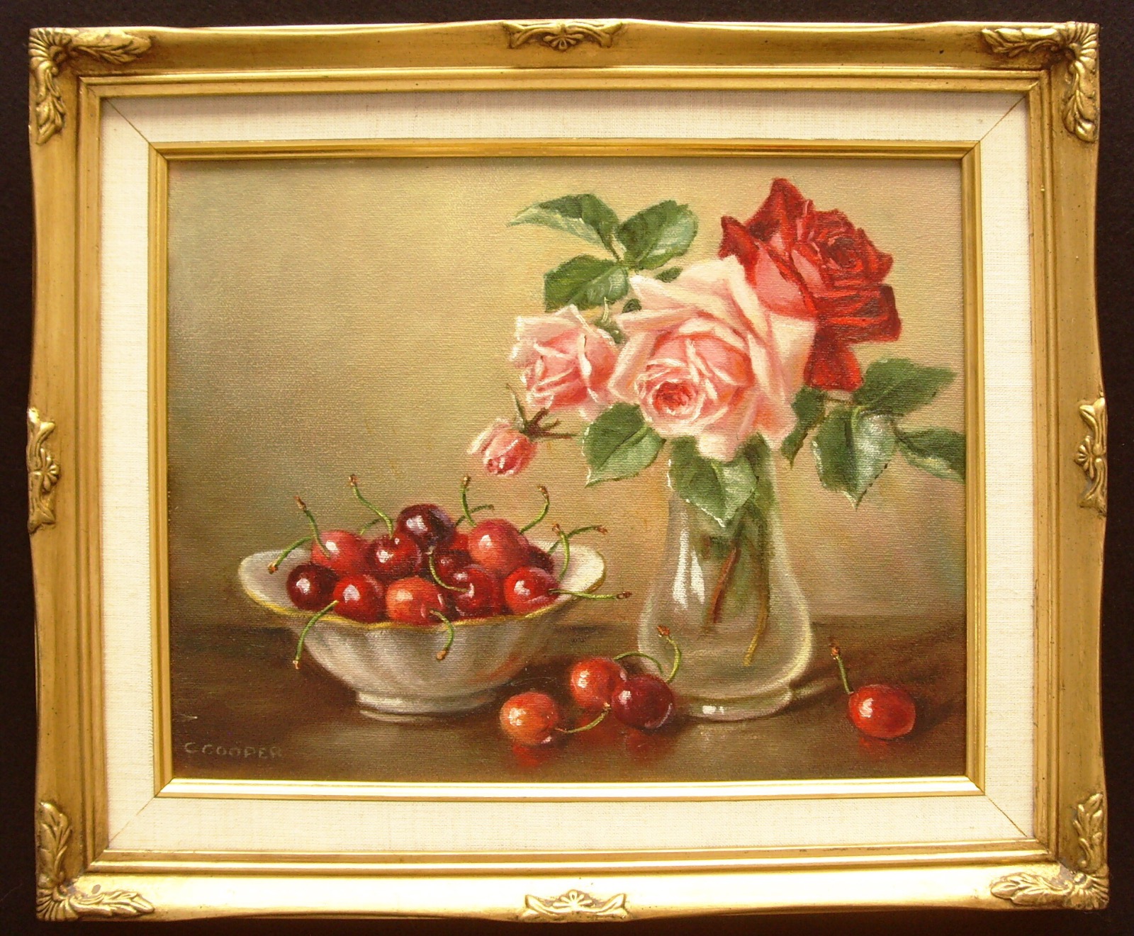 Still Life Oil Painting Cherries & Roses by Constance Cooper