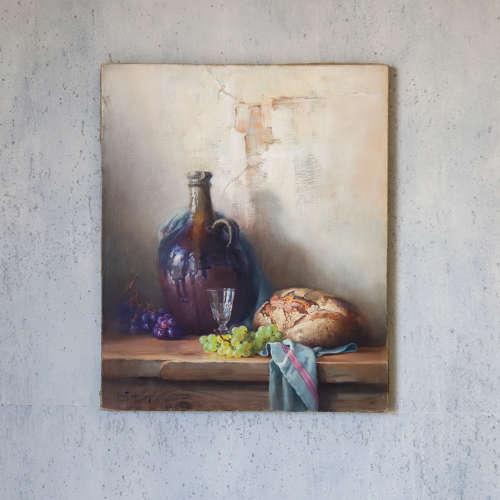Still Life Wine Flagon, Bread & Grapes Robert Chailloux 1913-2006 (1 of 7)