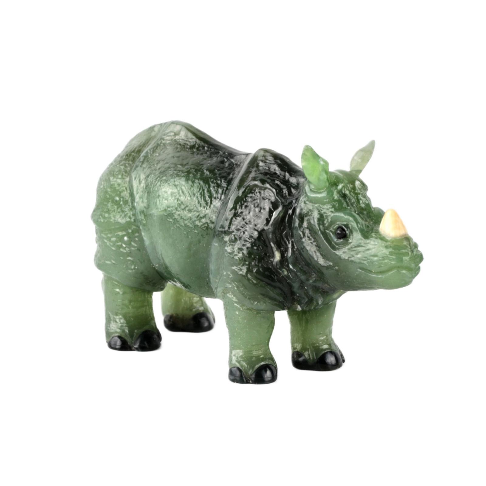 Stone-cutting miniature Jade rhinoceros in the style of products from the Faberge firm