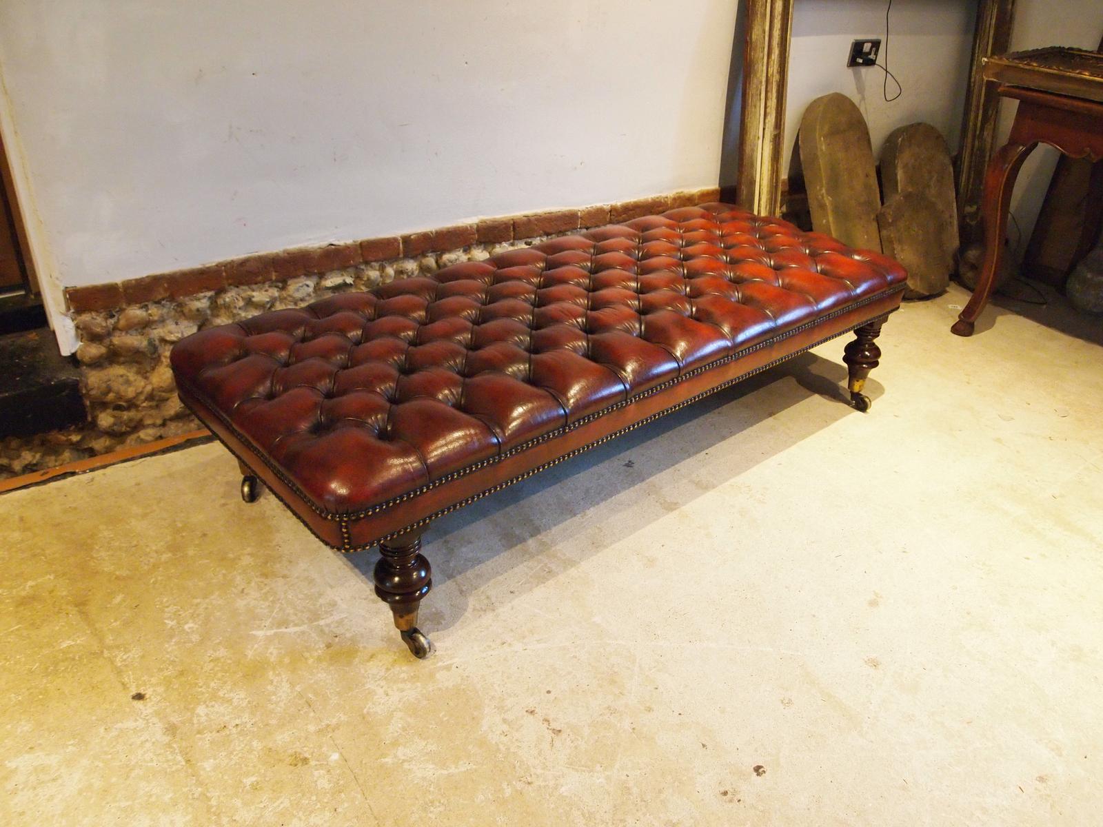 Stool Fine Victorian Chestnut Leather Chesterfield Stool C1880