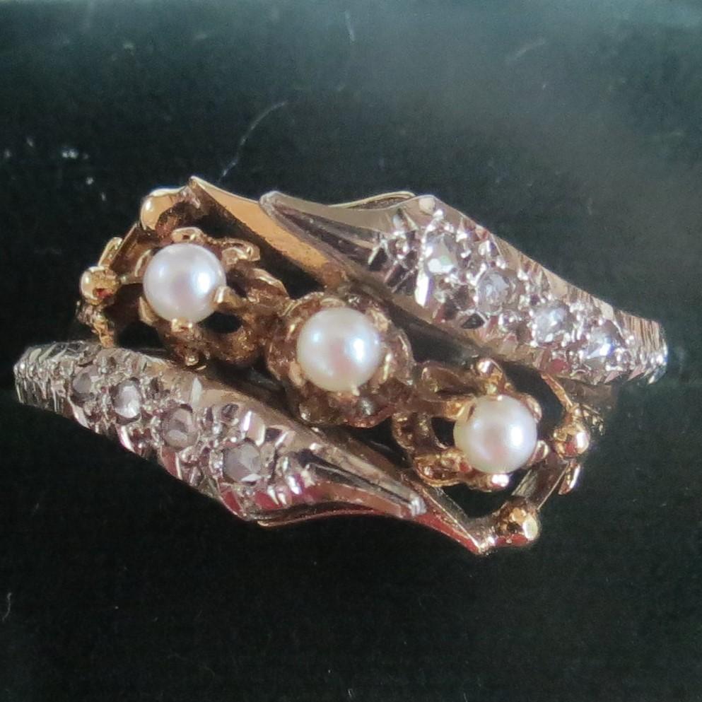 Striking 18ct Gold Pearl & Diamond Ring (1 of 7)