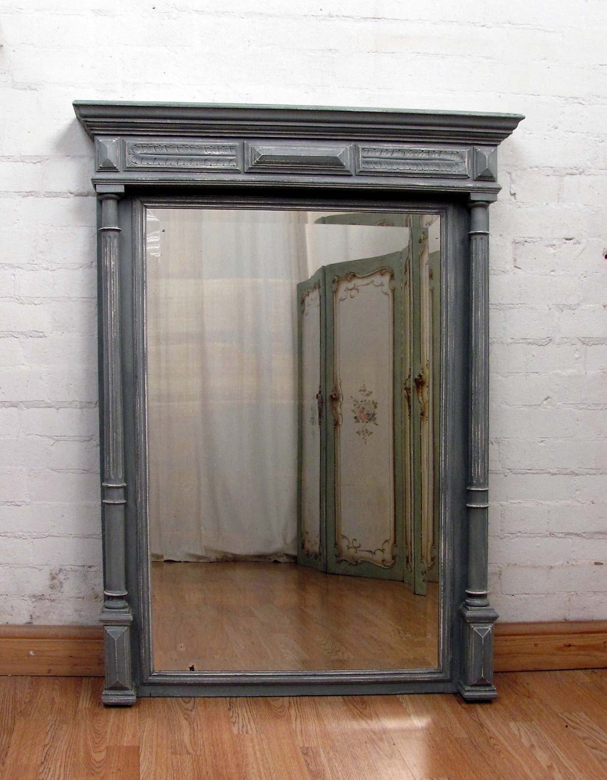 Striking Antique French Painted Oak Column Mirror c.1900